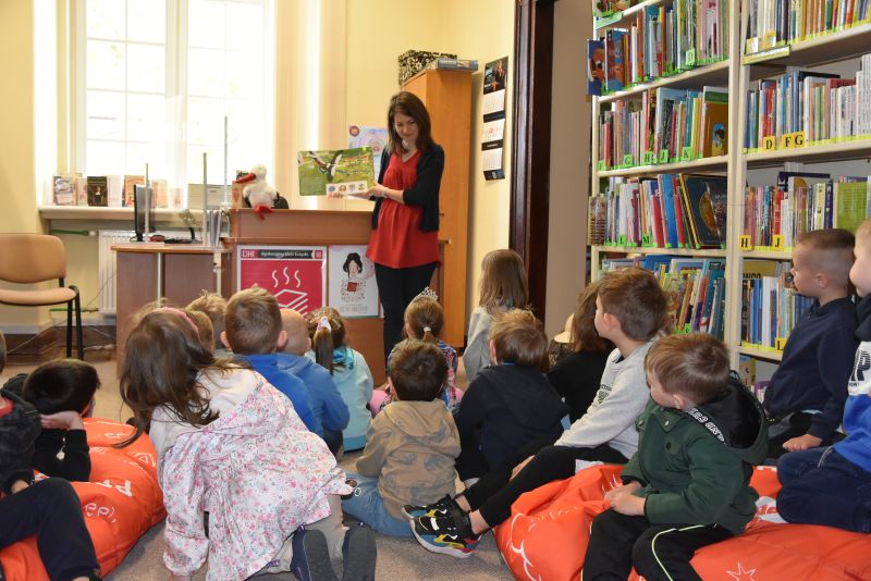 10 maja 2023r. nasza biblioteka zamieniła się od rana w łąkę pełną bocianów. Odwiedziły nas dzieci z Przedszkola nr 3 w Łowiczu. Wysłuchały opowiadania Zofii Staneckiej ,,Bocian z łąki". Dowiedziały się w jaki sposób bociany łączą się pary, co jedzą, gdzie budują gniazda i gdzie spędzają zimę. Brały udział w zabawie ruchowej i wykonały swoje bociany.