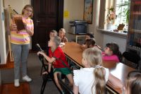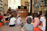 Świętowaliśmy Ogólnopolski Tydzień Czytania Dzieciom wspólnie z małymi czytelnikami z Przedszkola Nr 3 "Pszczółka Maja" w Łowiczu. Dzieci odwiedziły nas 5 czerwca. Wysłuchały bajki ,,Królowa pszczół", która została przedstawiona w naszym bibliotecznym teatrzyku kamishibai. Potem rozmawialiśmy o pszczołach, posiłkując się książką Piotra Sochy. Dzieci miały okazję obejrzeć ramkę z miodem oraz zobaczyć co zakłada pszczelarz, gdy zagląda do ula. Był też czas na słodką degustację. Na koniec zajęć przedszkolaki wykonały pszczółki z rolek po papierze