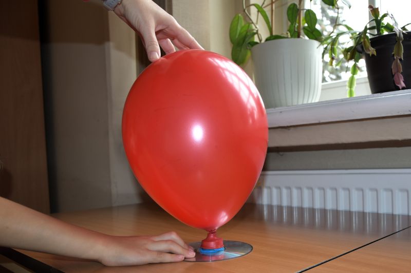 Najpierw skonstruowaliśmy poduszkowce. Potrzebowaliśmy do tego starych płyt CD, plasteliny, korków oraz balonów.
