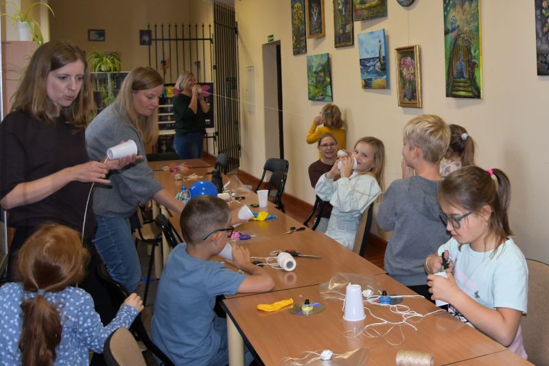 Jednak największą radość młodym wynalazcom sprawiły telefony z kubków oraz sznurka. Od razu zaczęły toczyć się rozmowy, a zabawie nie było końca.