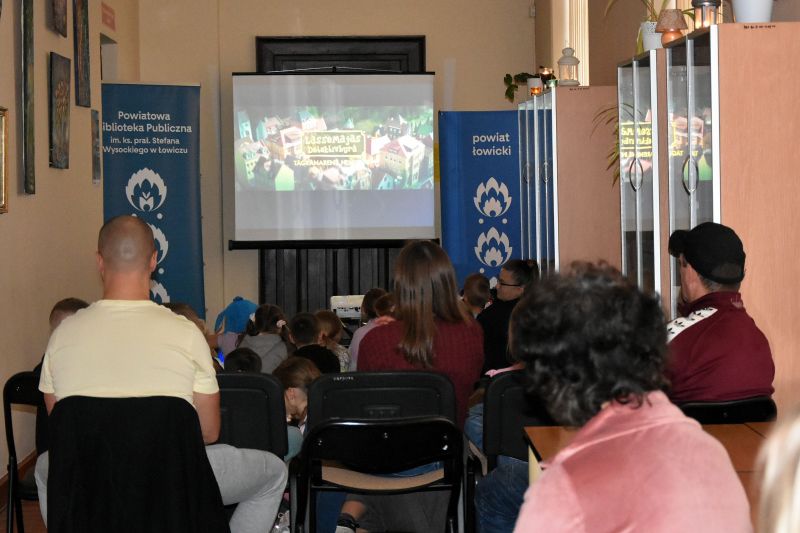 • Uczestnicy Nocy Bibliotek podczas projekcji filmu i warsztatów detektywistycznych