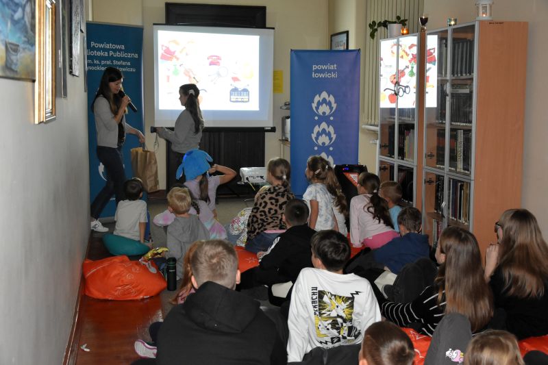 Piątkowy wieczór, 11 października, na długo pozostanie nam w pamięci, nasza biblioteka zamieniła się w salę kinową. Oglądaliśmy ,,Biuro detektywistyczne Lassego i Mai. Rabuś z pociągu". Niektóre dzieci, jak prawdziwi detektywi, domyśliły się kim jest rabuś.