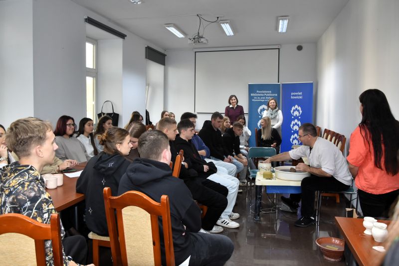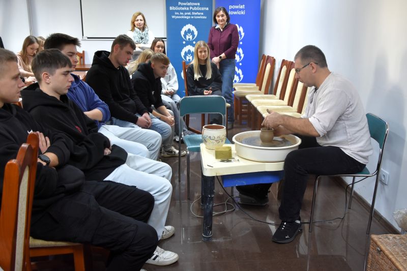 Dnia 21 października 2025 r. odbyły się warsztaty garncarstwa, w ramach projektu „Odkrywamy ginące zawody – rzemiosło w Łowiczu”, realizowanego z programu Ministra Edukacji pod nazwą „Nasze Tradycje”. Wzięła w nich udział grupa młodzieży ze szkół ponadpodstawowych w Łowiczu.