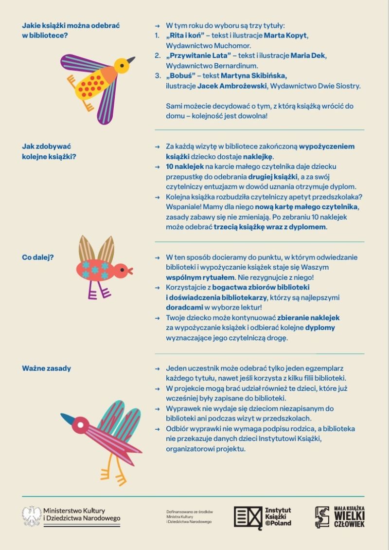 Kampania ,,Mała książka-wielki człowiek" jest realizowana przez Instytut Książki że środków Ministerstwa Kultury i Dziedzictwa Narodowego.