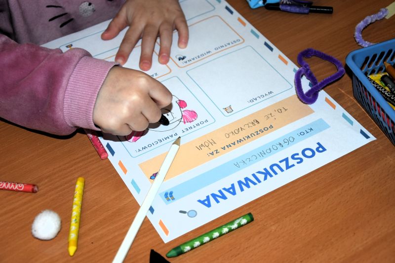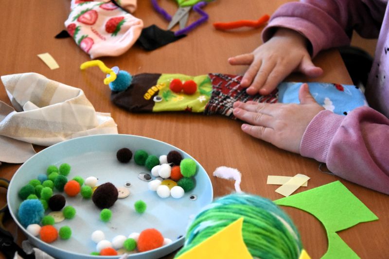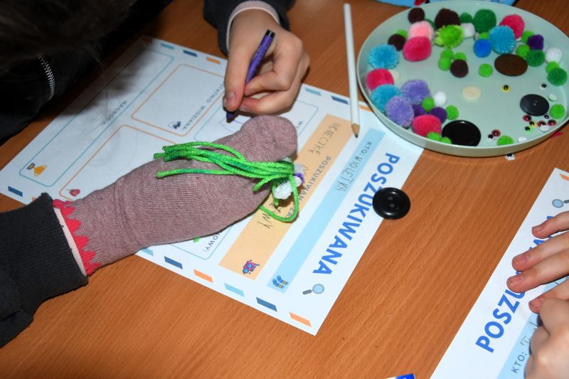 W drugiej części zajęć postanowiliśmy podarować naszym skarpetkom drugie życie. Wykorzystując resztki materiałów, kolorowe pompony oraz kawałki włóczki stworzyliśmy skarpetkowe pacynki. Były urocze, ale niesforne! Wpadły w dziurę pod pralką i musieliśmy napisać ogłoszenie o zaginięciu. Niektóre poszukiwane skarpetki miały naprawdę ciekawą historię.