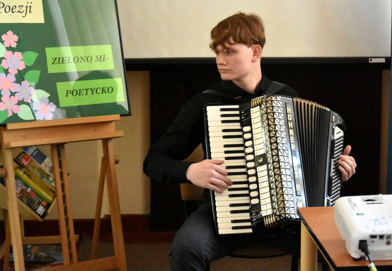 W dniu 28 kwietnia 2026 r. odbyło się spotkanie poetyckie ,,Zielono mi - poetycko", które pokazało, że słowo i muzyka nie znają granic wieku. Przy jednym stole zasiedli uczniowie z Zespołu Szkół Technicznych im. 10 Pułku Piechoty w Łowiczu i seniorzy z Klubu Seniora Radość w Łowiczu. Rzem dzieli się tym, co najpiękniejsze – wrażliwością, doświadczeniem i miłością do poezji.